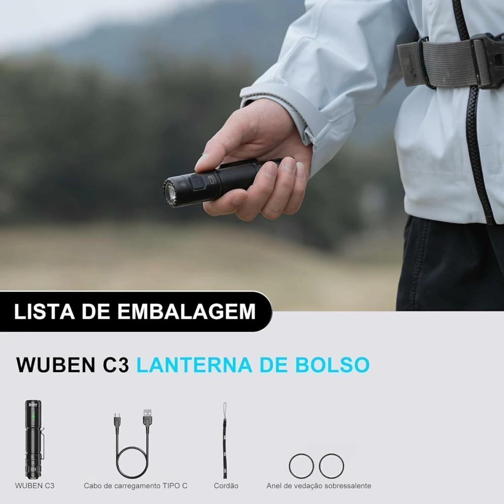 WUBEN C3 é uma lanterna EDC de novo lançamento, que utiliza LED P9 importado da Alemanha, emite luz brilhante até 1200 lúmens e atinge 180 metros de alcance.